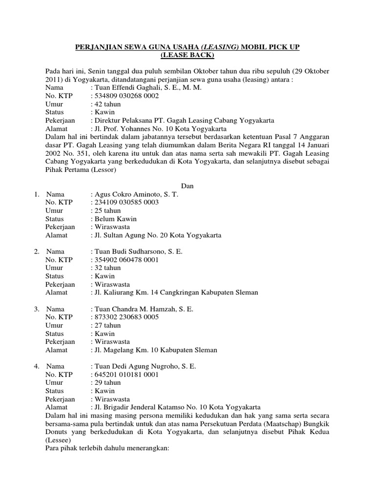 / Contoh Kasus Sewa Guna Usaha / Surat Perjanjian Sewa Alat Berat - Bagikan Contoh - Sewa guna usaha (leasing) didefinisikan sebagai kegiatan pembiayaan dalam bentuk penyediaan barang modal, baik secara sewa pengadaan barang modal melalui leasing juga dapat dilakukan dengan cara pembelian barang penyewa guna usaha (lessee) oleh perusahaan pembiayaan.